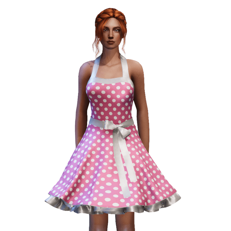 Fifties Rockabilly Polka Dot Dress pink. Created for Alina, but fitting all avatar sizes. #Valentine
