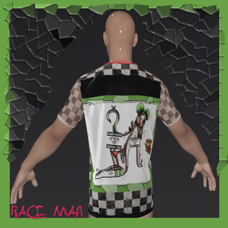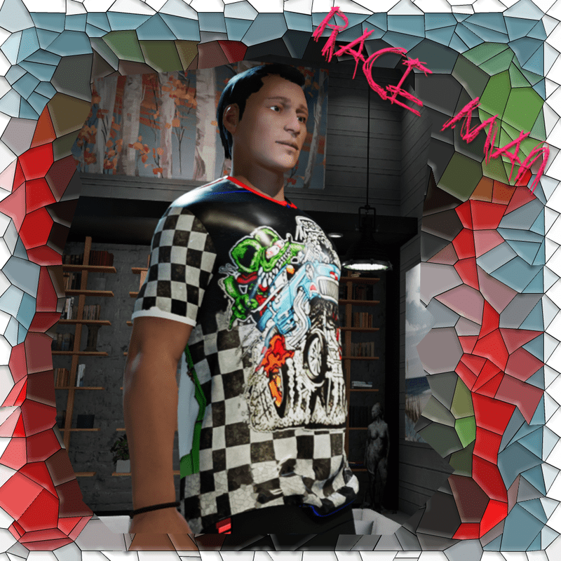 "Race Man" is what you're going to hear 24/7 while wearing this fast looking t-shirt. You're going to turn Sansar into a battle ground of roaring engines, horny men and woman literally will be throwing themselves at you because they are hungry yes hungry to have a crack at the title, but they cant win, no no not while you're wearing this bad boy.