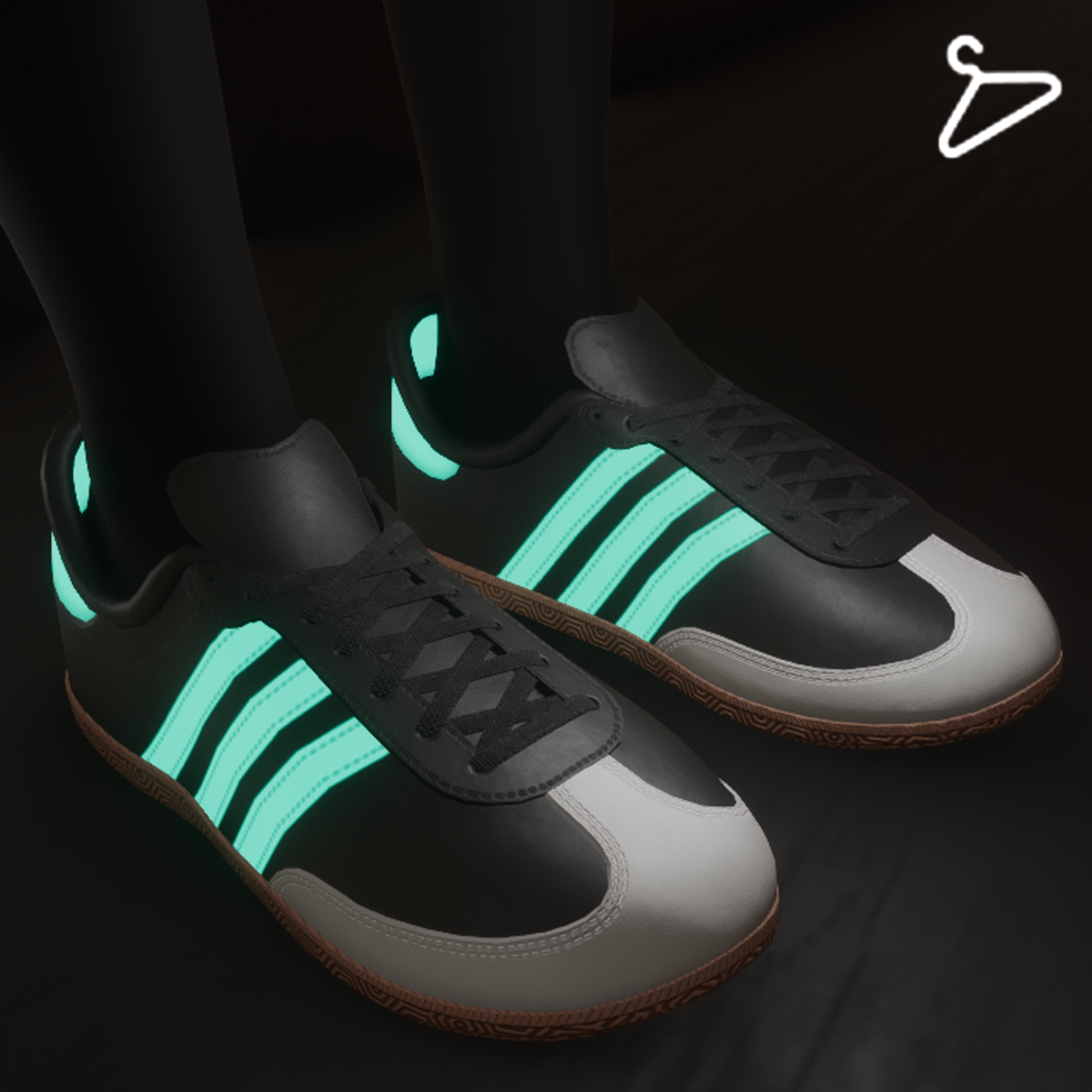 Striped sports shoes with glowing accents. Fits both the default male and female avatar feet, should fit custom avatars feet if they are modeled to fit the default foot shape. Make sure to set your inventory to 'Show all clothing' if the Shoes does not show up immediately for you in the clothing tab. (See the example picture on this listing for reference.) Contact "TheNick-1981" through Sansar or Sansar discord if you need re-rigging, a custom design or if there is a problem etc.