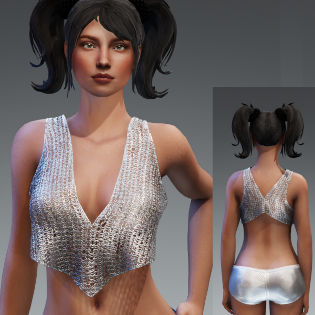 V-Neck Chain Top. Check my store for the matching metallic shorts Get Demo Here: https://store.sansar.com/listings/b31df329-c3bb-46f3-b5ce-ddd245c6202e/v-neck--chain-top---demo Trying on the available Demo is the best way to assure your satisfaction with quality and fit. The lighting isn't the best in the lookbook and the shoulders seem to fit funny in the lookbook as well, so I recommend wearing the demo in world to see how it truly looks on you. Visit my inworld store experience to find discounted items that or not available on the marketplace and also look for miniature butterflies to find free mystery gifts! https://atlas.sansar.com/experiences/lonaleelancaster/lona Made in Marvelous Designer and can be adjusted to fit most avatars. Please try a demo to assure fit and satisfaction. To learn more about transforming and adjusting Marvelous Designer clothing visit this link: https://help.sansar.com/hc/en-us/articles/115005693363-Fitting-Marvelous-Designer-clothing-to-your-avatar#some-tips