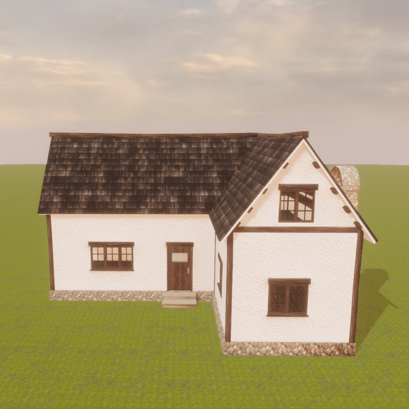 a small cottage with 2 rooms and attick.Size ca. 11m x 14m.The door for the cottage is in my store available too. https://store.sansar.com/listings/3bcffce1-3077-45b7-9bef-24f9e2af76f5/old-door