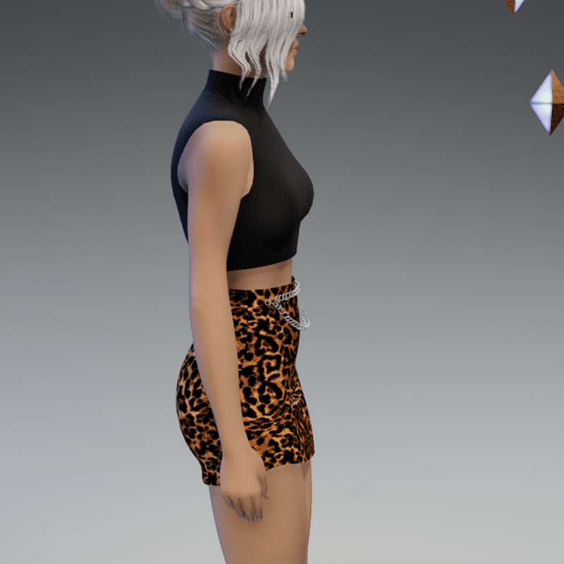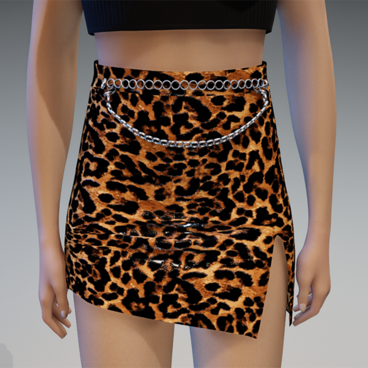 This asymmetrical mini leather skirt comes with some chains on the front and a slot on the side. Enjoy! <3