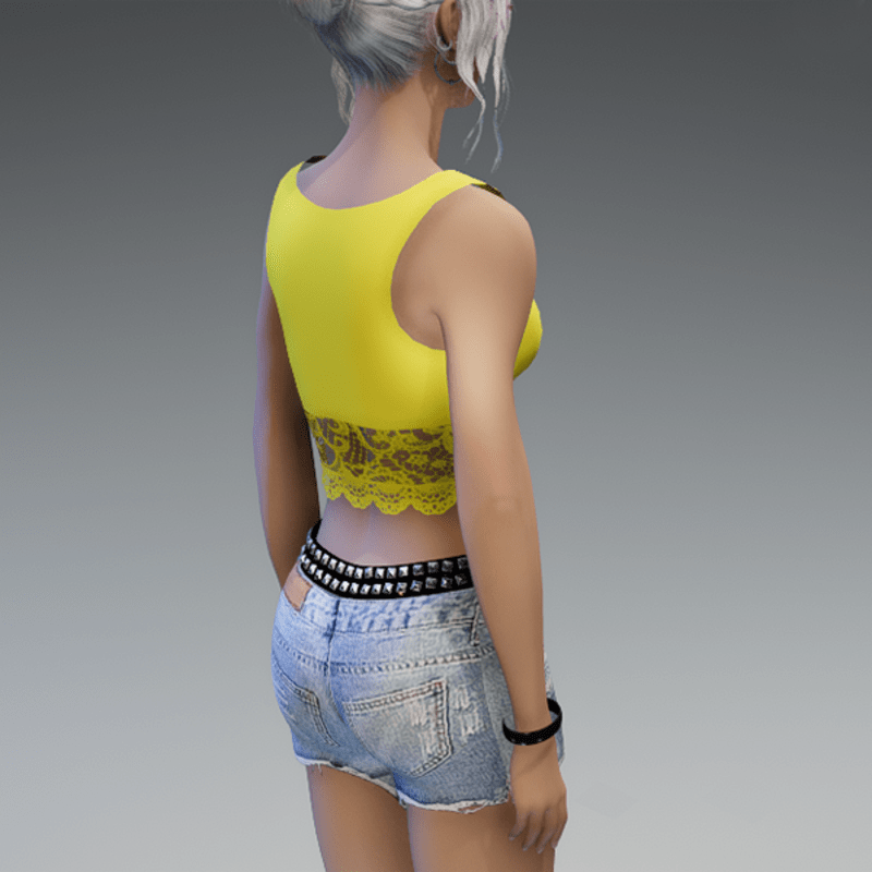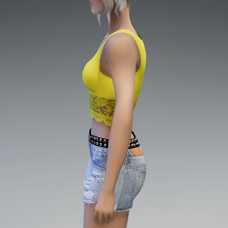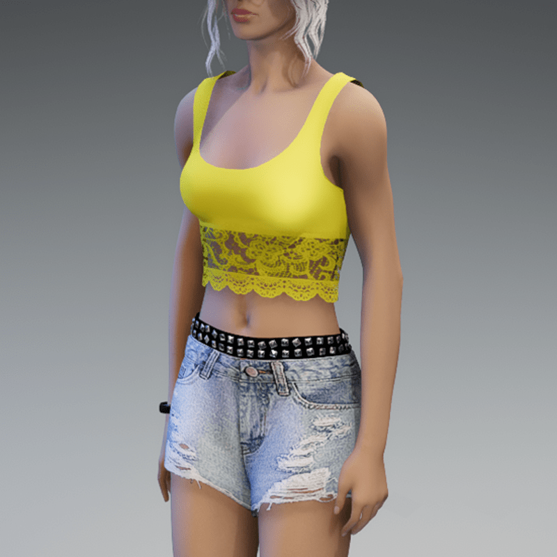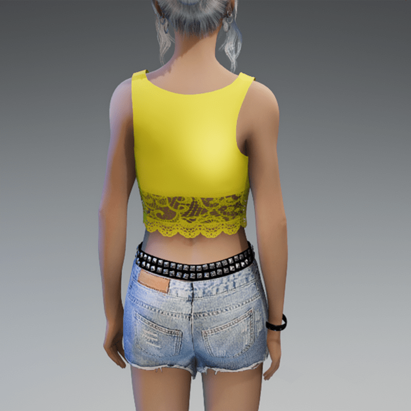 A yellow top with some lace-applications on the bottom for some hot days! Enjoy!