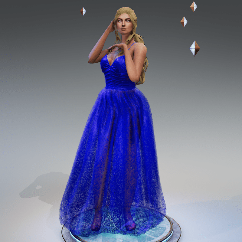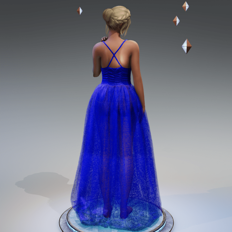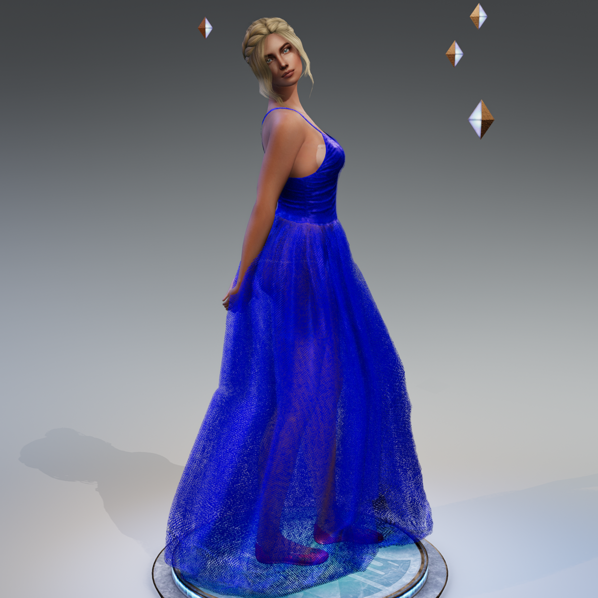 With this silk and tulle dress you will be the belle of the ball! Easy to fit, adjusted to most female human bodies so you will only have to simulate it. But be aware, your simulation takes a while because the design has so much fabric.
