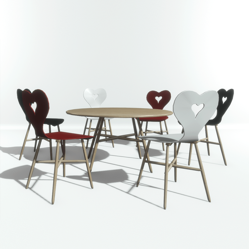 An elliptical shaped wooden table, part of the "Heart set". With collision. Take a closer look here: https://atlas.sansar.com/experiences/luise/studio-lamda