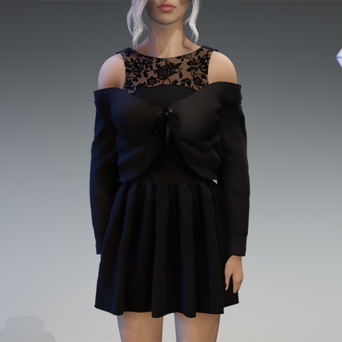 This dress comes in a lace fabric and a short jacket over it which has a bow on the front. Enjoy! <3