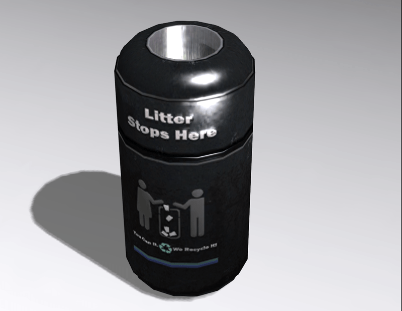 Public trashcan, recicle bin. Collision mesh. See: https://atlas.sansar.com/experiences/philiproman/prestige
