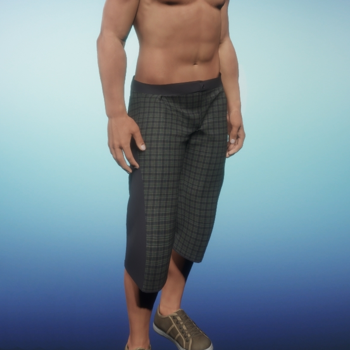 Two tone loose fitting shorts for men. Use simulate cloth when wearing.