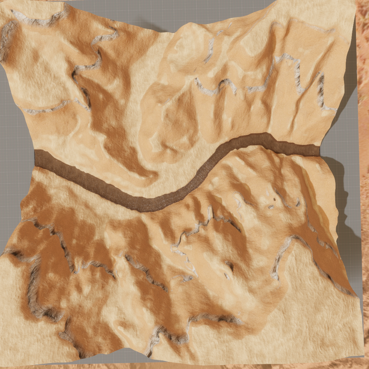 100x100 meters section of the Grand Canyon to scale 1:20 3 layers + detail shader with rock and two kinds of sand. Water layer with a separate collision parented to the main container. -Improved in version 3. 52.9 MB, 33.5k tris. Editable.