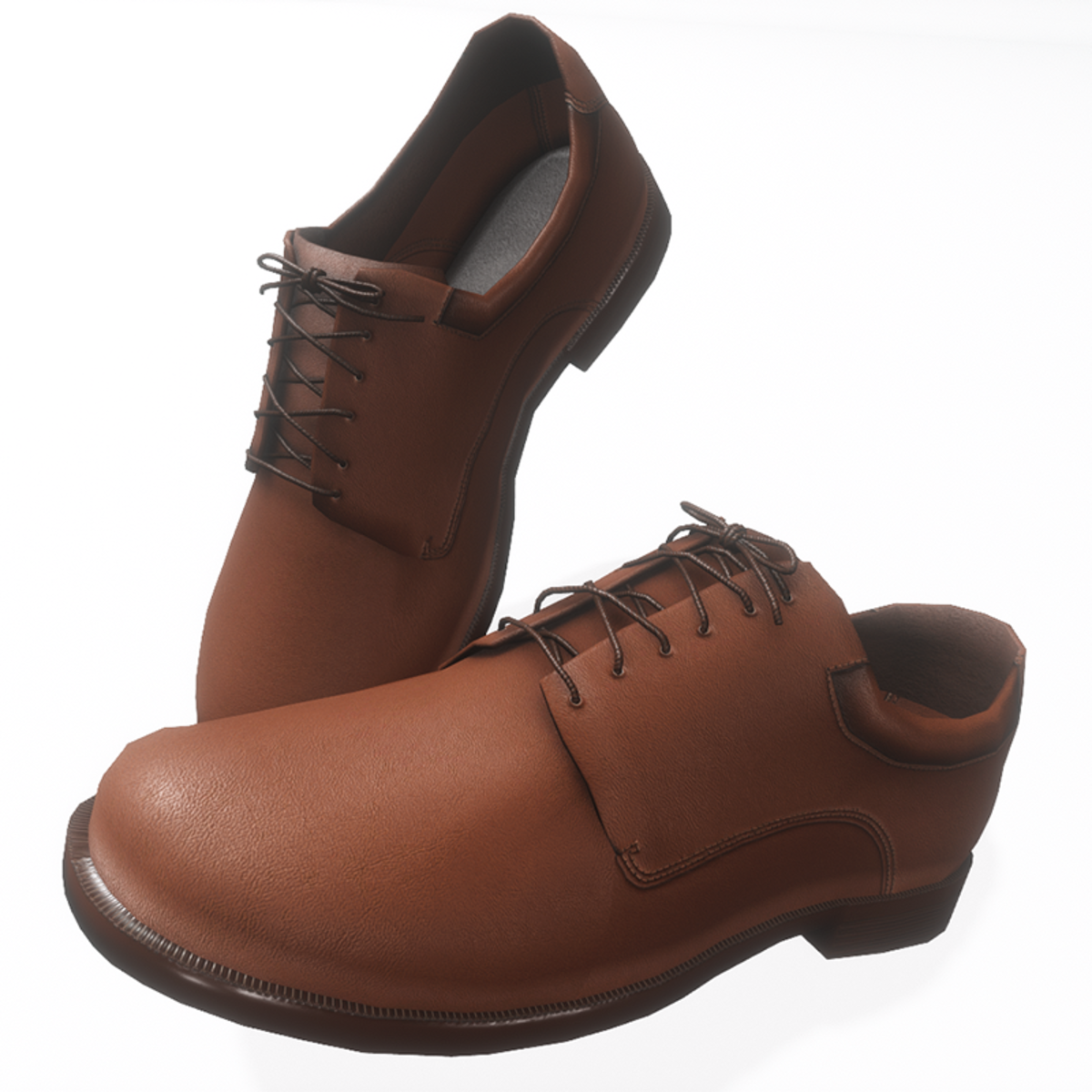 Oxford silhouette men's leather shoes with padded tongue and collar with traditional lace-up closure. In brown colour. Get the free demo item to check fit and style before purchasing here: https://store.sansar.com/listings/48afb68f-4d33-4899-8b5a-2ab9dd5ddae4/oxford-style-male-shoes---demo