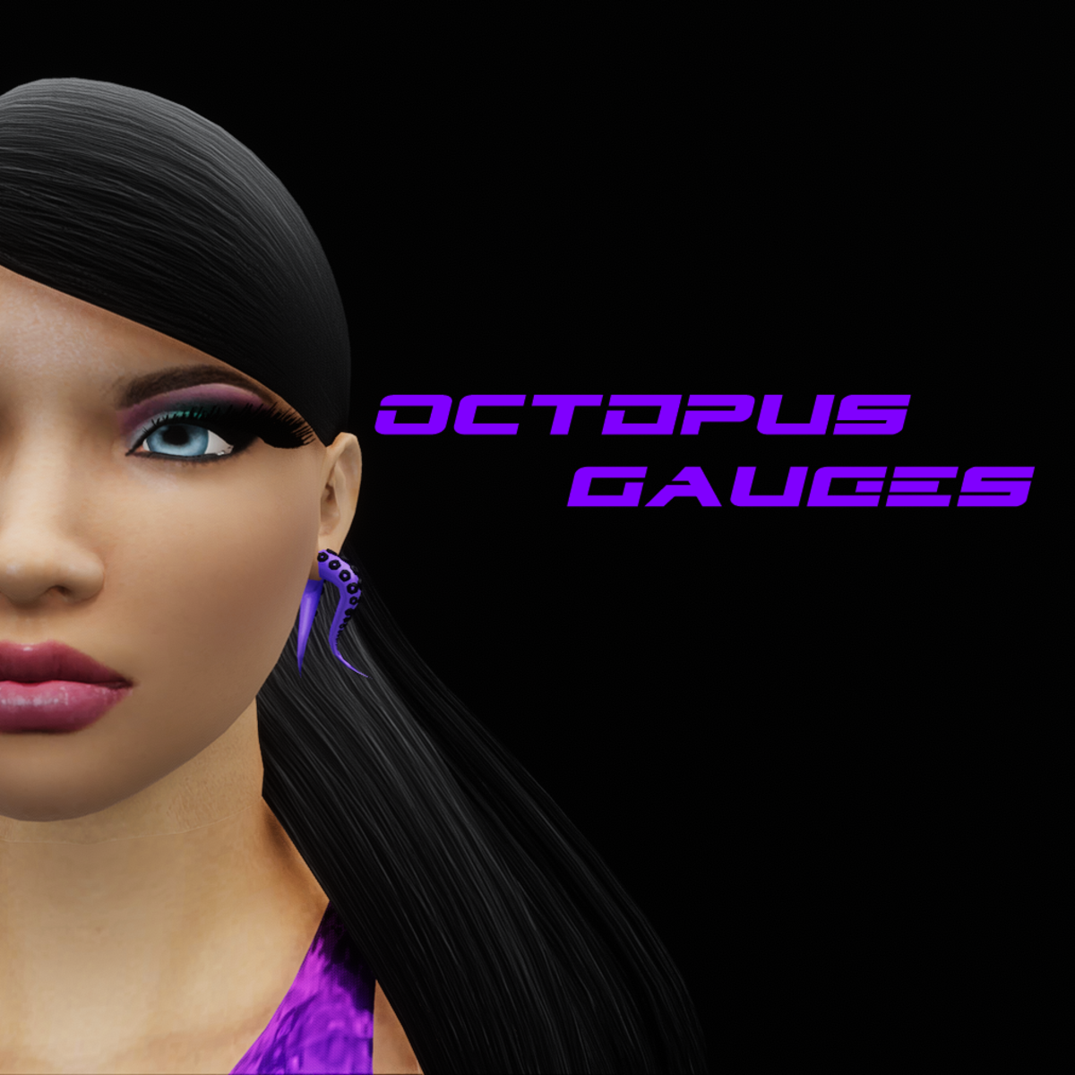- Octopus Tentacle Gauge Earrings (Violet Black)