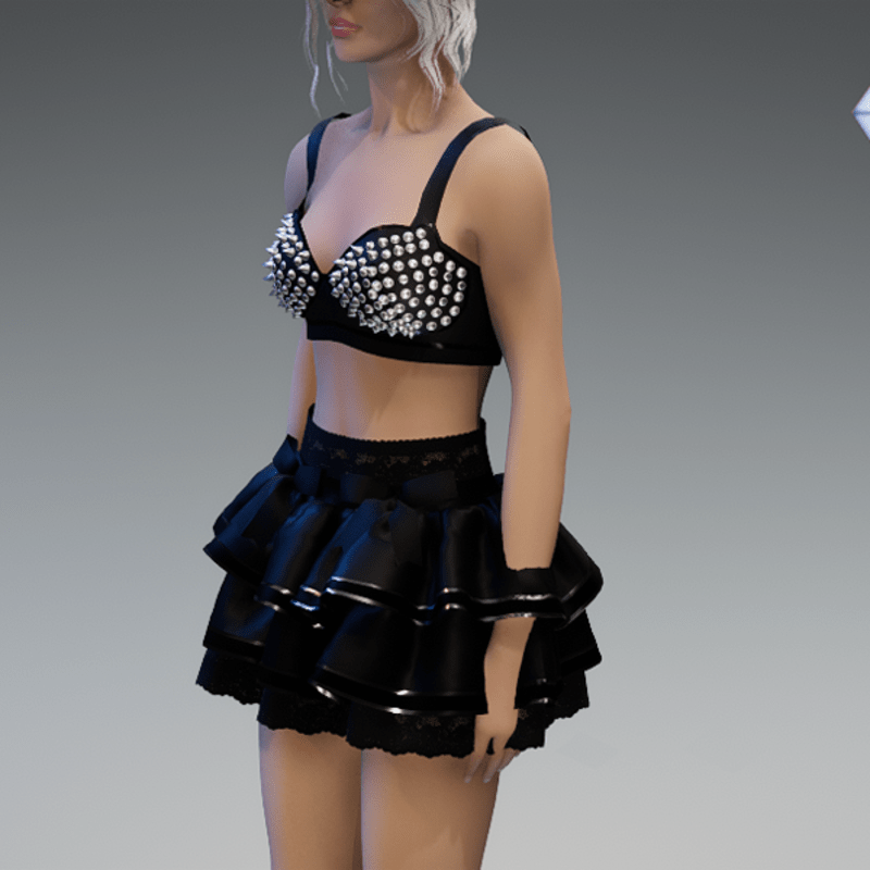 Kawaii Goth Skirt in Black & Silver
