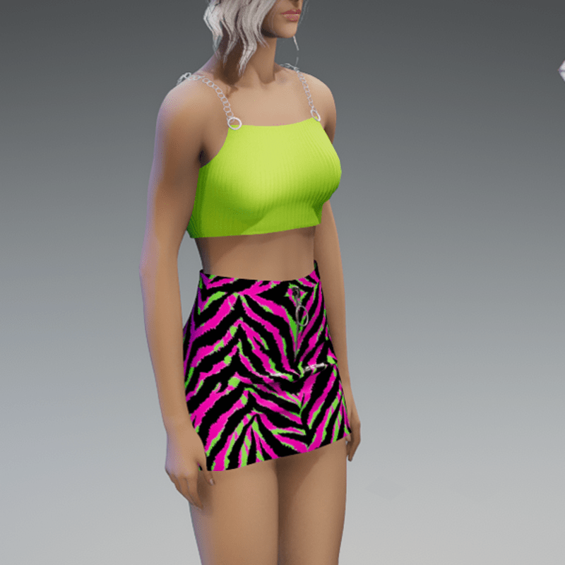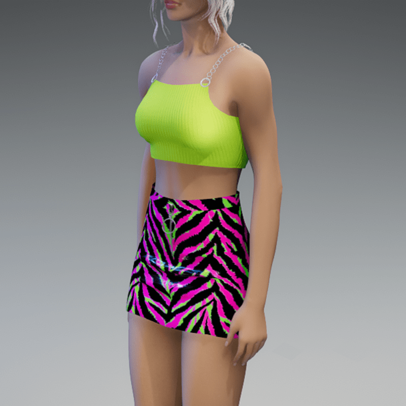 This mini skirt comes with a cute tiger plastic pattern and a zipper on the front. Enjoy! <3