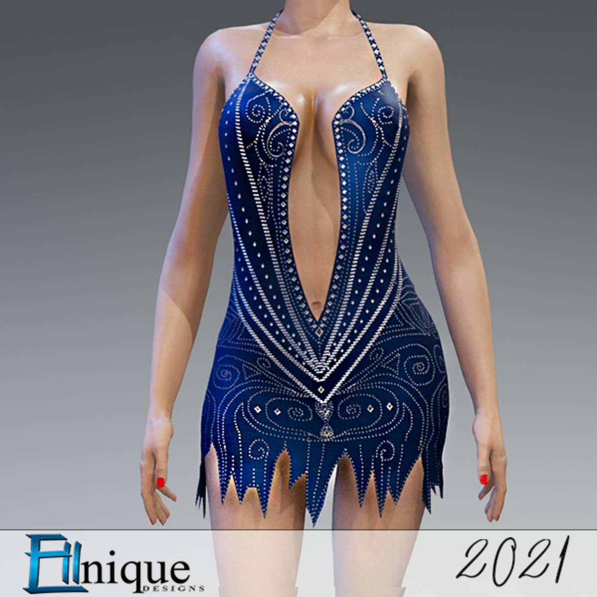 - 2021 New Year Cocktail dress with Studs Blue