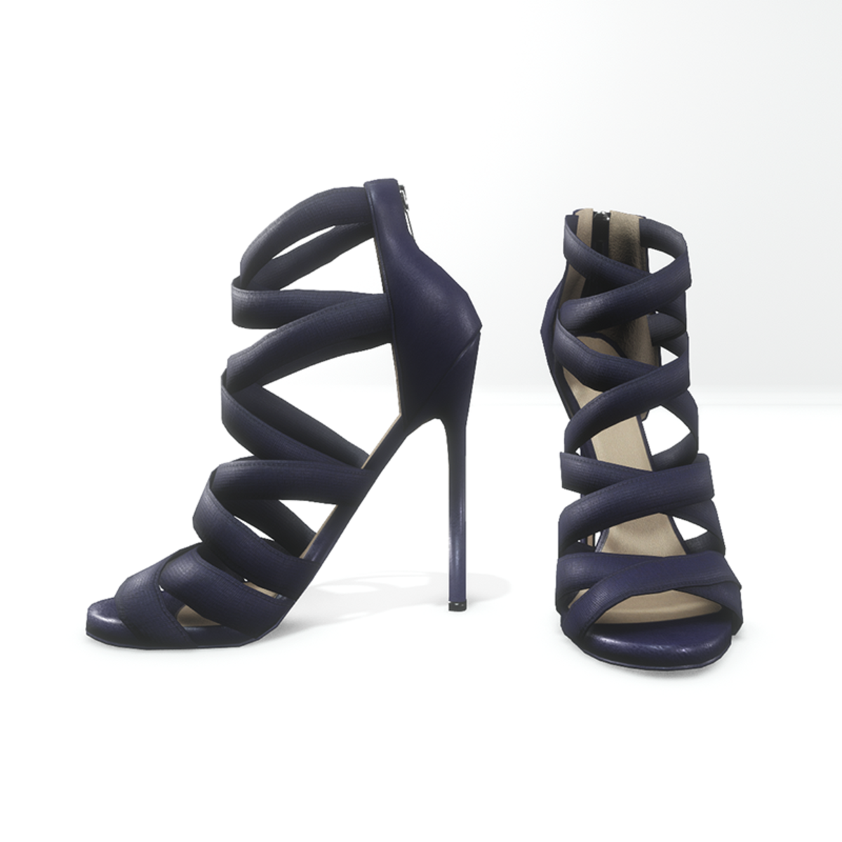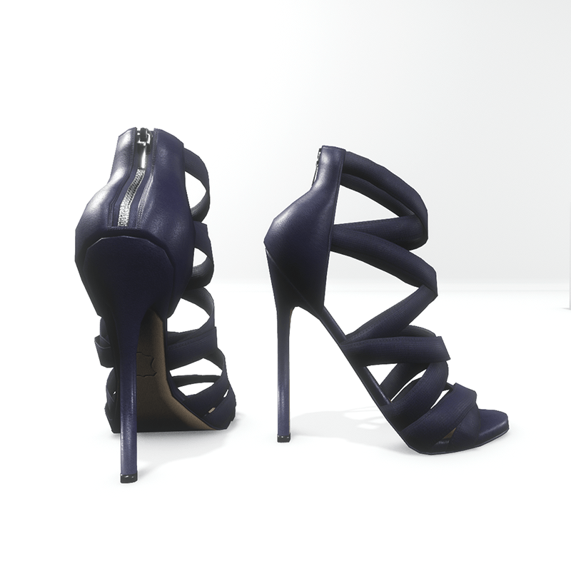 The stiletto heeled sandals feature a stretch textile and leather upper. They closure at the back with a zipper. In dark purple colour. Get the free demo item before purchasing here:https://store.sansar.com/listings/1c131a58-14ea-43a4-a940-a525f1b58047/strappy-stiletto-sandals-for-nicci---demo