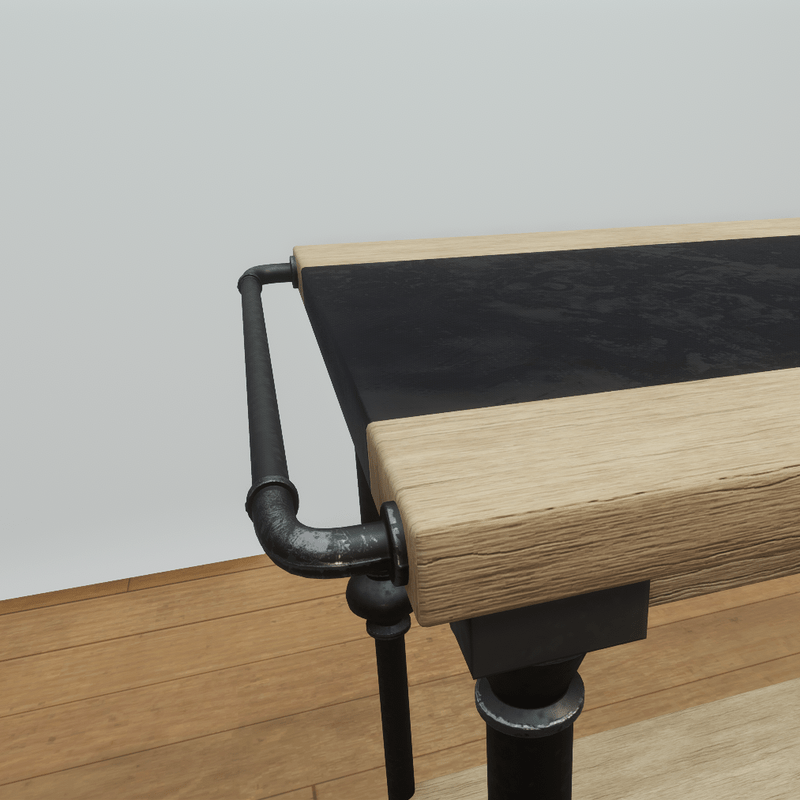 Custom designed and textured birch large wood console or hallway table with vintage piping and pully wheels. Perfect for the industrial minded connoisseur. Part of a set, you can find the small console in the store here: https://store.sansar.com/listings/c9c91c04-c9e6-4c36-b0de-7413a0ce5afc/birch-wood-small-console