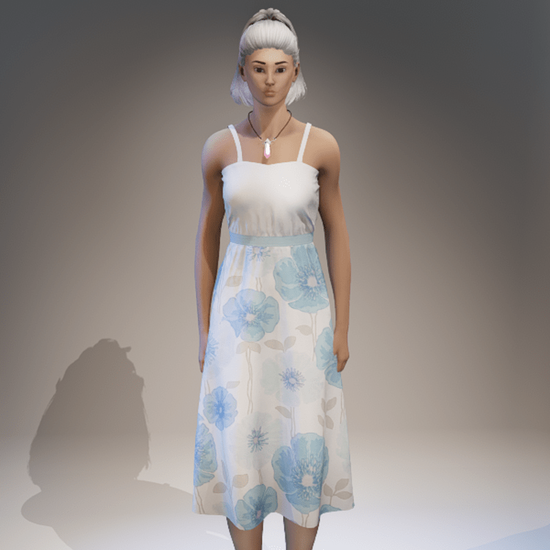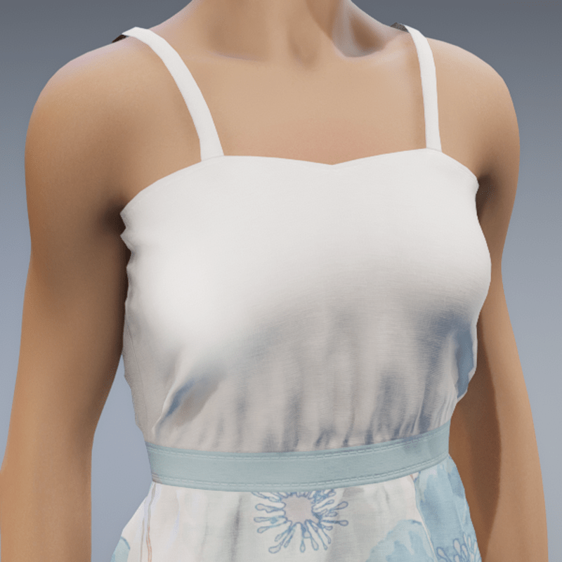 A simple strap dress, light and airy perfect for those hot summer days. Fitted to the default female framed avatar. A marvelous designer clothing item therefor is able to be simulated and transformed in order to fit many different avatar body shapes. Other colours available on store. Contact "TheNick-1981" through Sansar or Sansar discord if you need re-rigging, a custom design or if there is a problem etc.