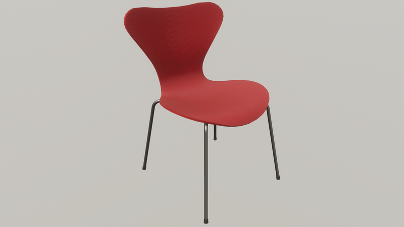 Design Dining Chair - Wood 01 - Red Painted The model is inspired by the famous Seven Chair by Danish designer AJ. PBR Textures, and has a low poly physic shape. Standard Sit function applied to the Chair