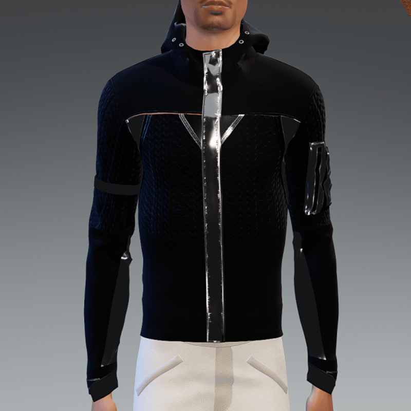 A futuristic sweater in black with chrome details. Great to stay in delicate futuristic version