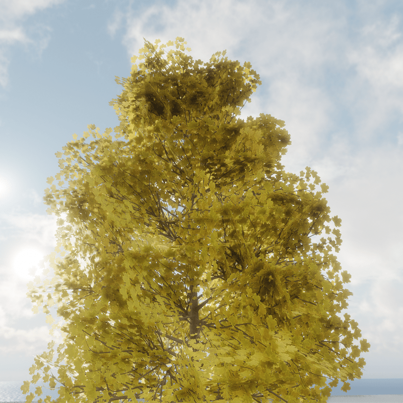 Yellow Maple Tree variation 4 2913 Triangles Trunk collision You can see it at The Worlds factory: https://atlas.sansar.com/experiences/lluisindigo/worlds-factory#Maple_Maple_Yellow
