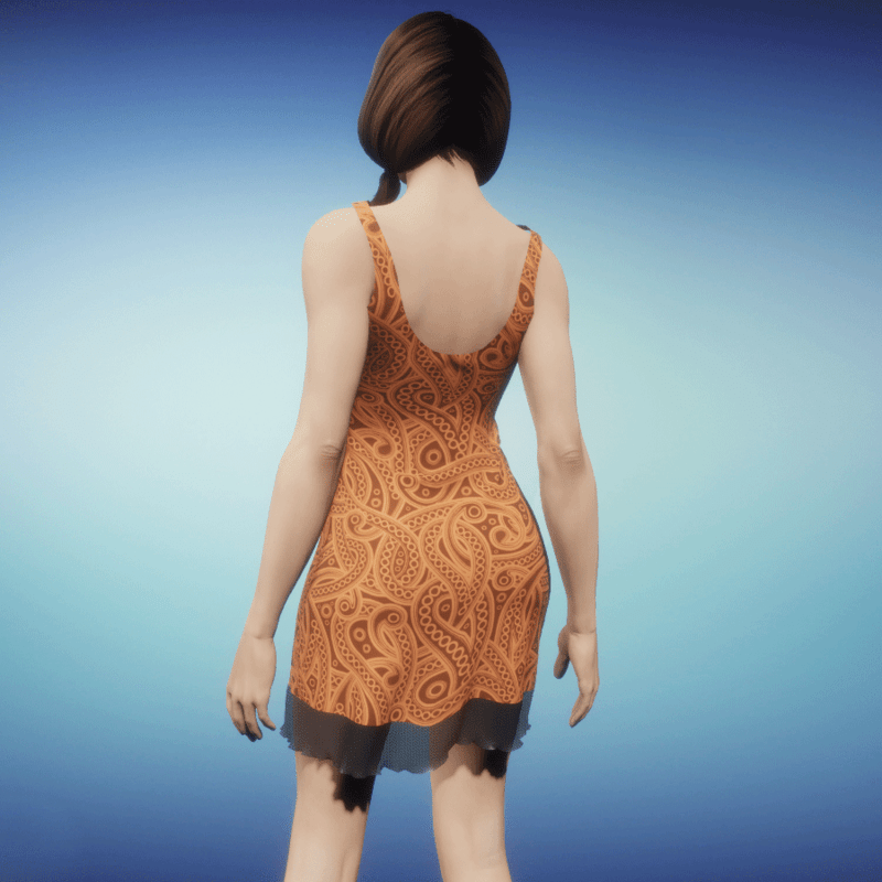 Modern summerdress with semi transparent parts! Please simulate the clothes before wearing to adjust it optimally.
