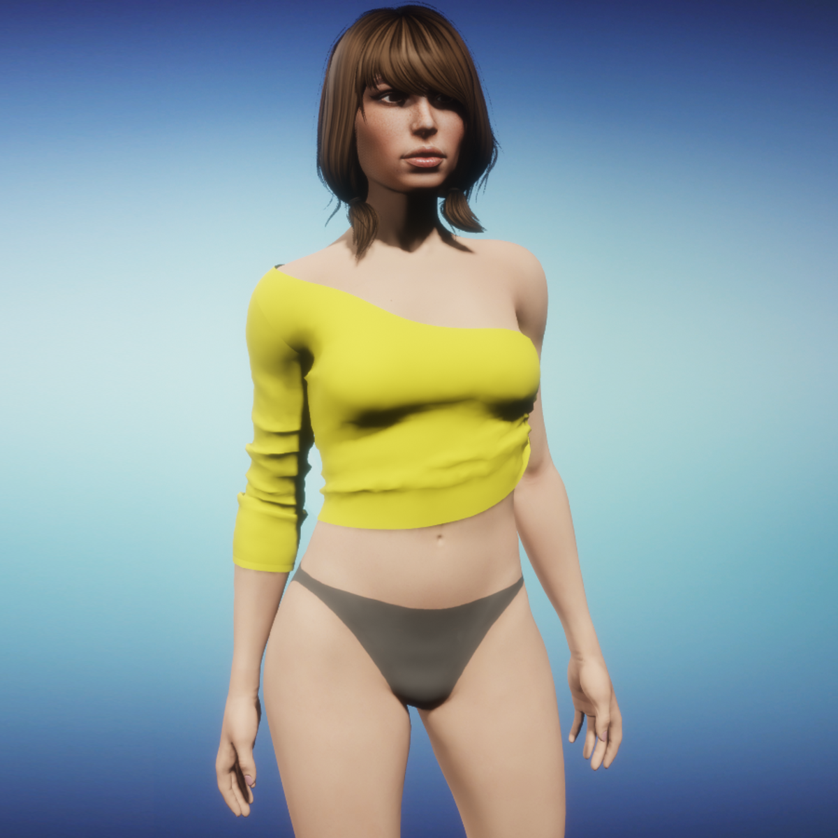 Sexy, modern top made with Marvelous Designer. Please simulate the clothes before wearing to adjust it optimally, if it doesn`t fit.