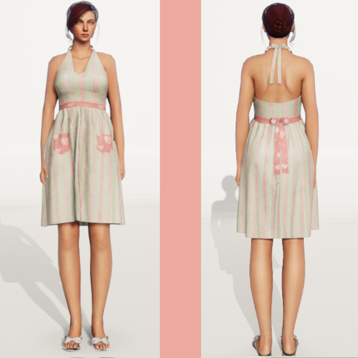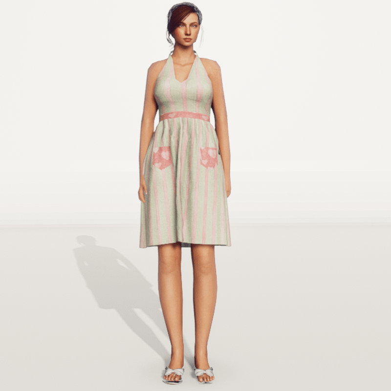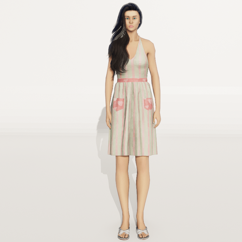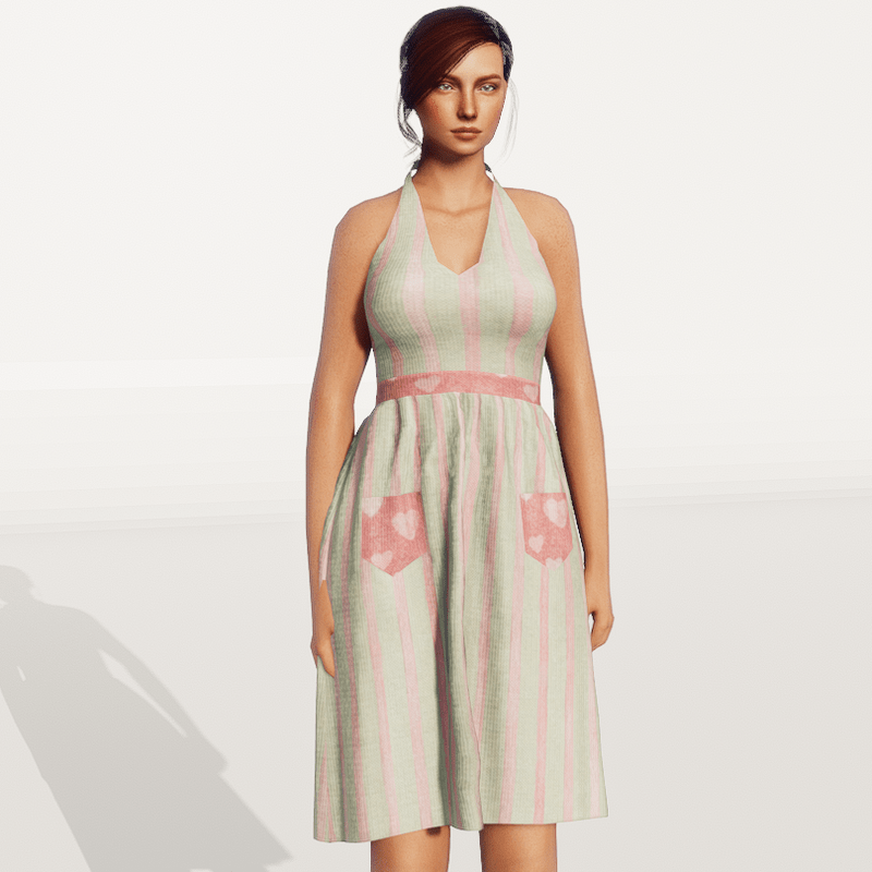 Vintage Halter Top Dress Check out my store for more great fabric choices. Made in Marvelous Designer and can be adjusted to fit most avatars. Created on a custom avatar, slightly curvier than AV2.0, to allow for a better custom fit. May require transform and adjust tools. Pictured with Alina and AV2.0 Try the Free gift version to assure fit, located here: https://store.sansar.com/listings/d779fc58-3d59-42fe-ac1d-335209c2ffb0/st-valentines-day-gift-2020-nannas-attic---vintage-halter-dress----pattern-8 Visit my world here: https://atlas.sansar.com/experiences/lonaleelancaster/lona