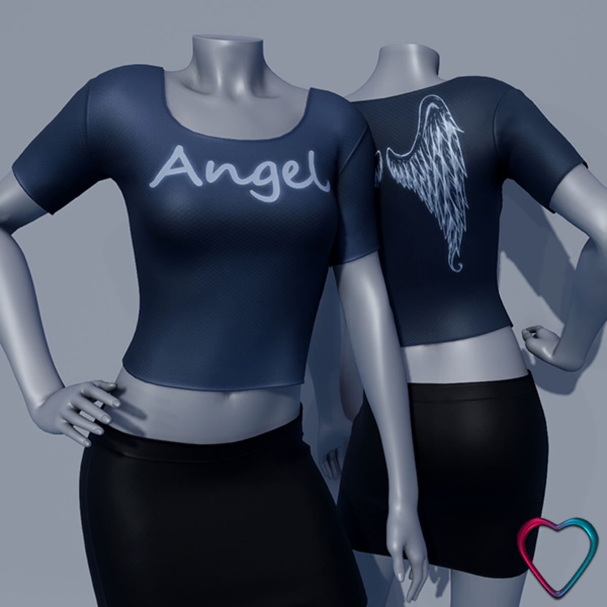 Bring a touch of divine elegance to your collection with our "Angel" T-shirt. Proudly displaying the word "Angel" on the front and featuring beautiful angel wings printed on the back, this fitted crop top is designed to capture the essence of celestial grace. Available in 16 vibrant colors, each T-shirt offers the perfect blend of comfort and style, making it ideal for various occasions. Pair it with the matching skirt for a complete and harmonious look, or mix and match colors to create your own unique style. ------------------------------ Technical Details: - Material: Stretchy and breathable fabric for optimal comfort - Design: High-definition print of the word "Angel" and angel wings - Colors: 16 vibrant and durable color options ------------------------------ You can see them in Sansar here: https://atlas.sansar.com/experiences/morganeparis/mpp-mainstore PS: I created it from scratch. I hope you like it. Enjoy and Keep Good Vibes. Hugs from Morgane.