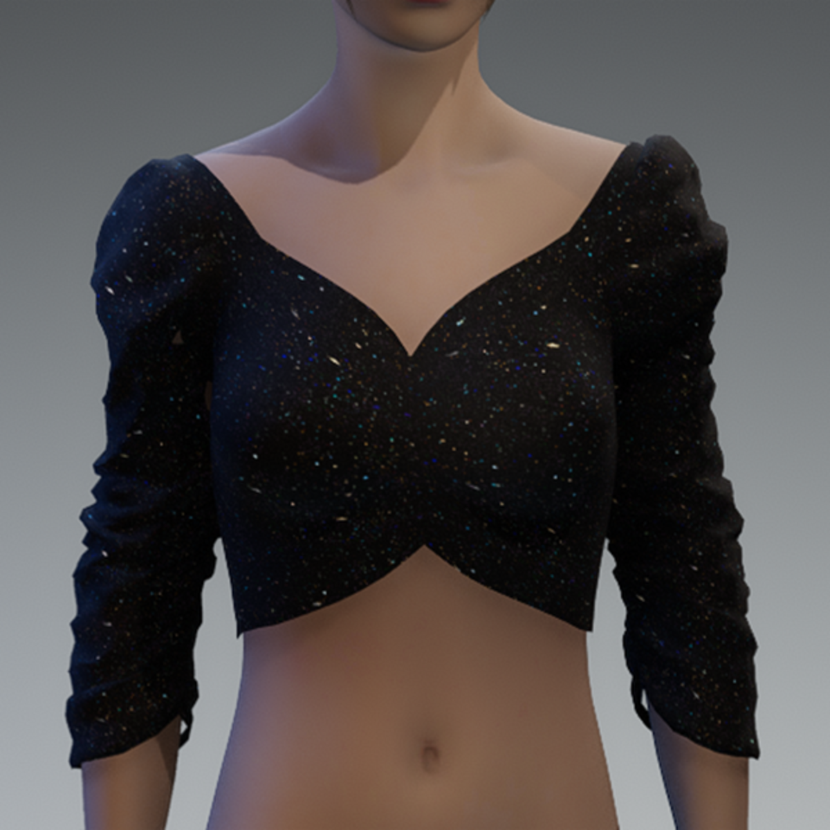 Emissive starscape ruched puff sleeve top