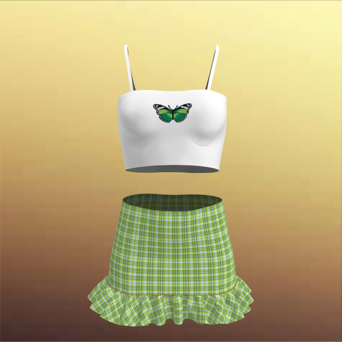 Butterfly Spaghetti Strap Shirt and Tartan Skirt 01
