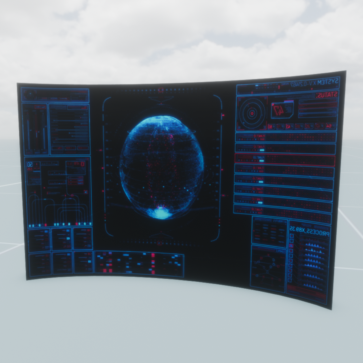 A large curved screen. Transparent