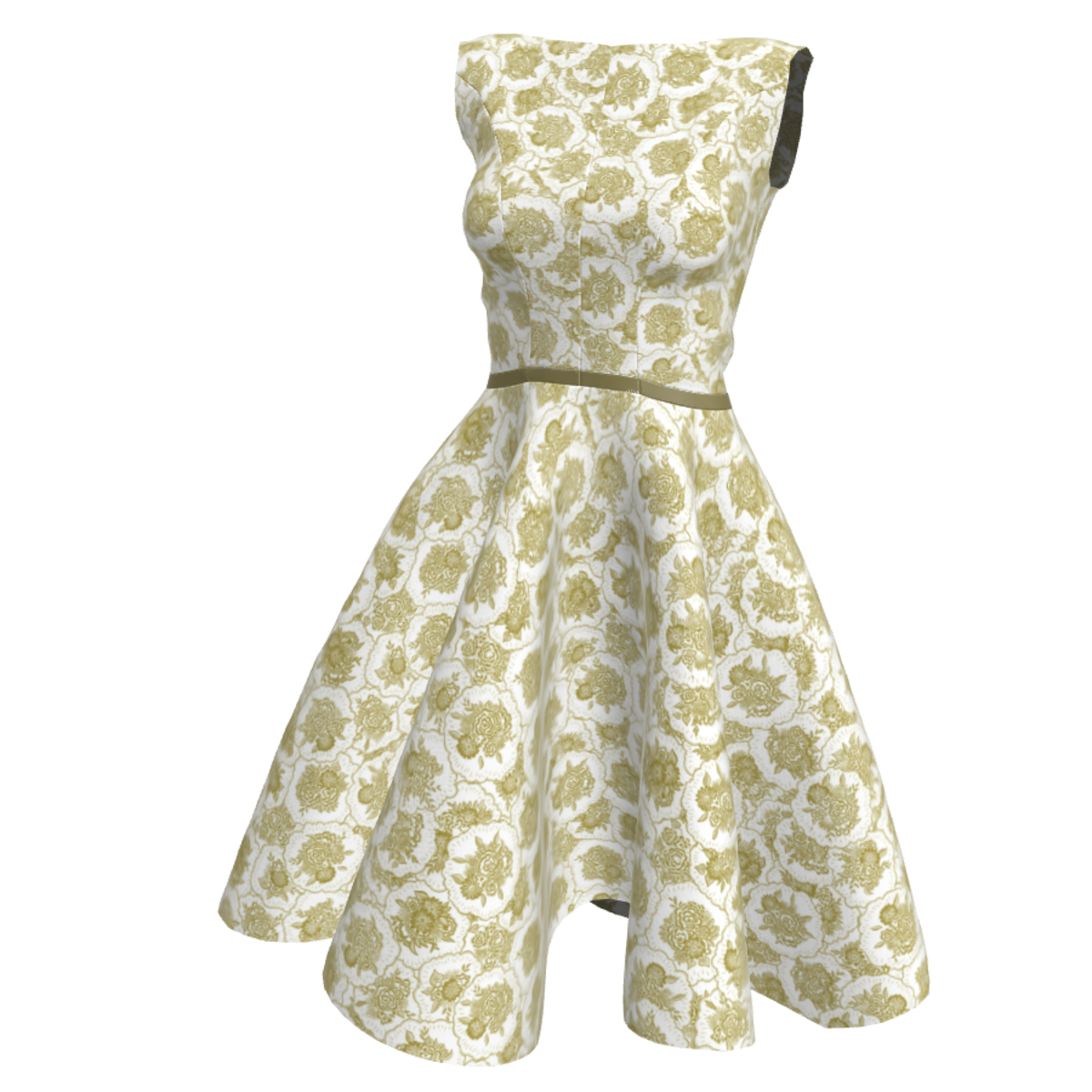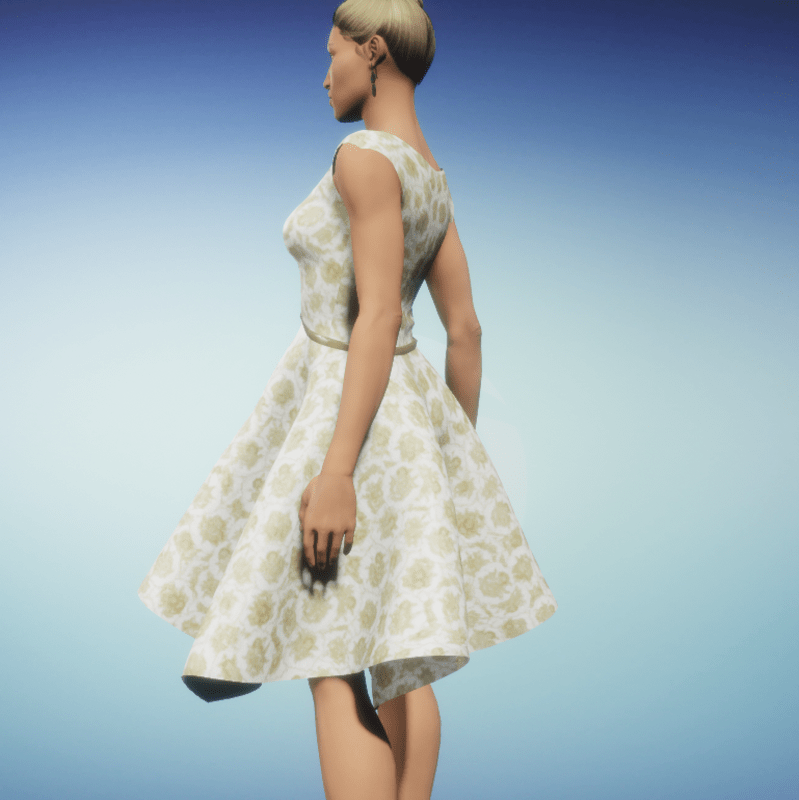 A puffy flowerly dress with a leather belt