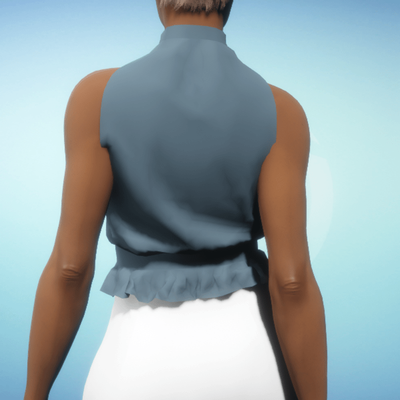 Elegant sleeveless blouse with a high neck and waist ruffle. By Sweet Distractions