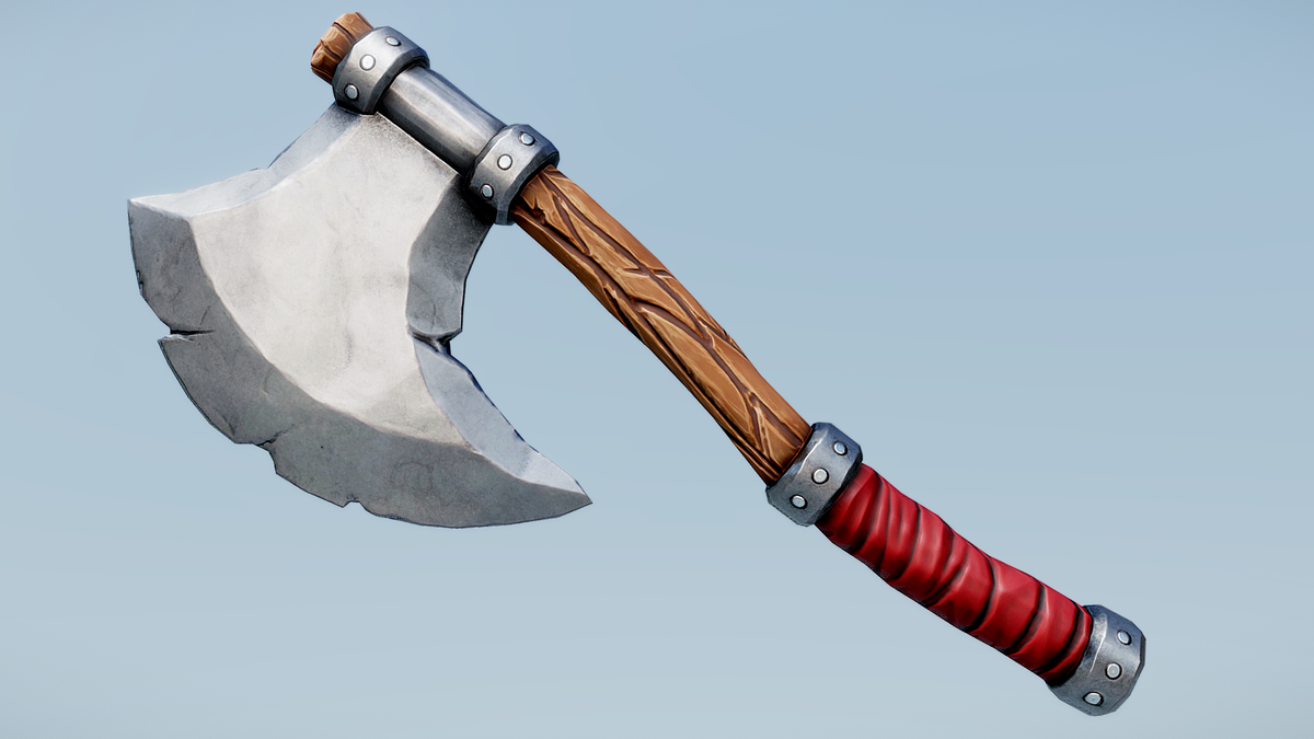 Stylized Axe perfect as Decoration or Weapon in a Stylized Environment This one has a Red Handle Sculpted in Zbrush, Retopologized in Topogun, and Painted in Substance Painter Textures are Physical Based Rendering (PBR)
