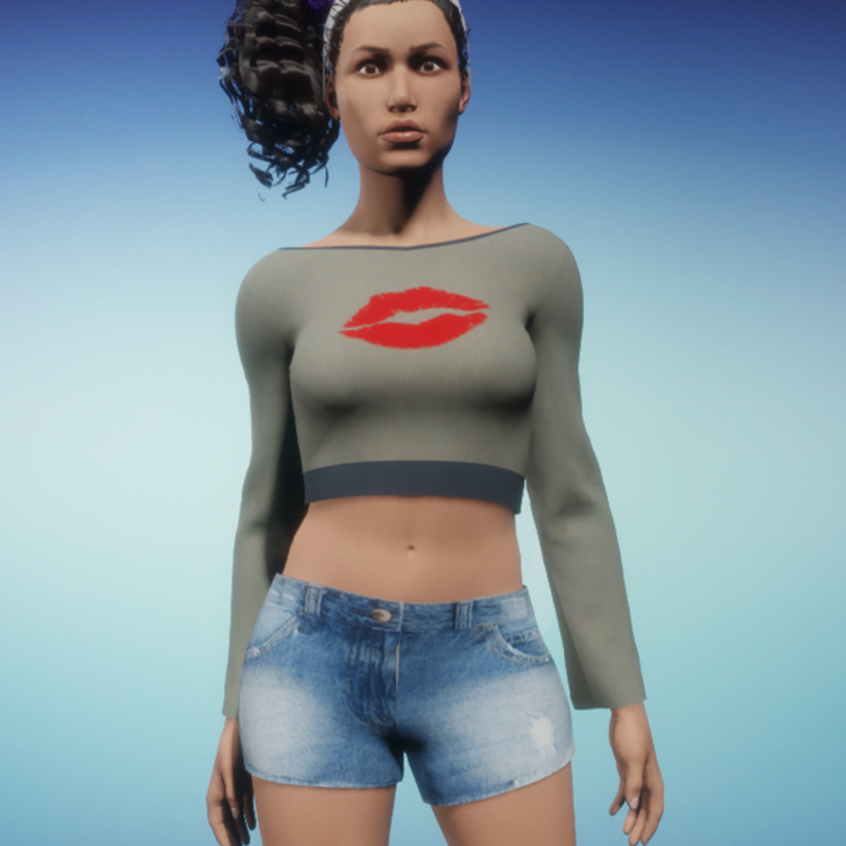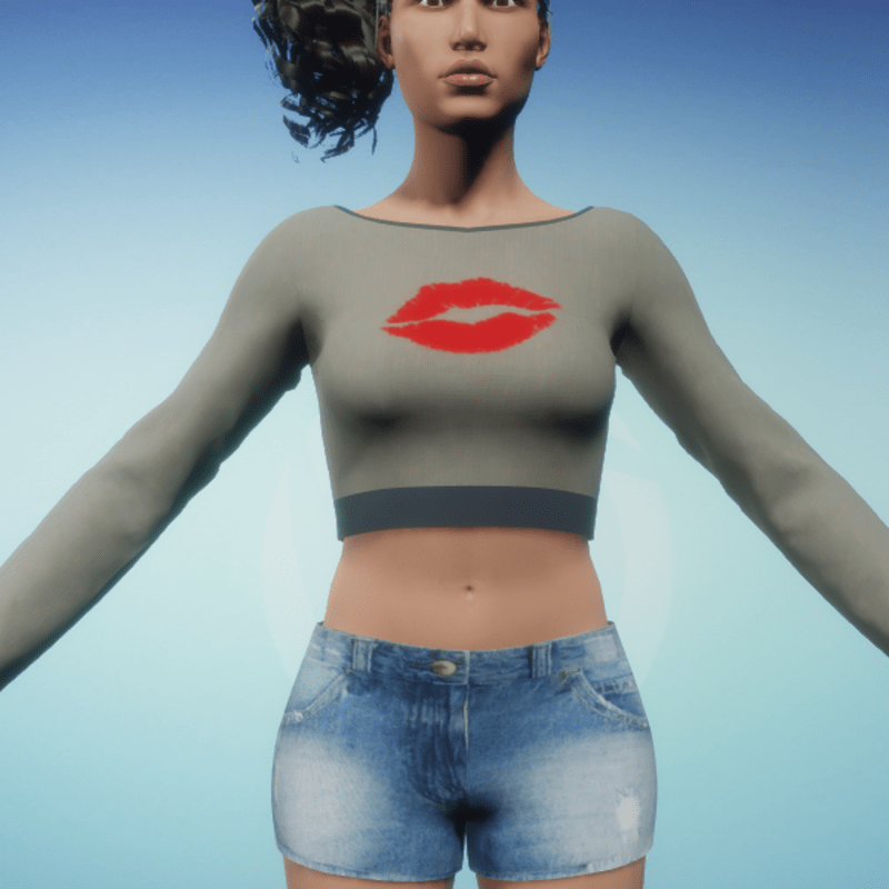 Women's LongSleeve Croptop - With Lips Print Simulate the garment over your avatar for better fitting & to avoid overlapping.