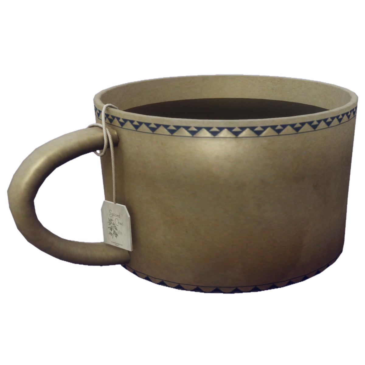 A little mug of hot spiced chai tea. It can be see here: https://atlas.sansar.com/experiences/stupidmonkey/abby-s-monkey-s-things