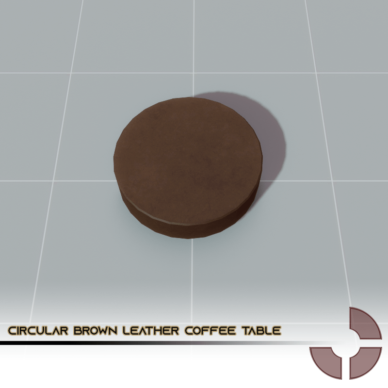 Basic Circular Brown Leather Coffee Table with led. You can change the color of the lights. PBR textures / 306 poligons.