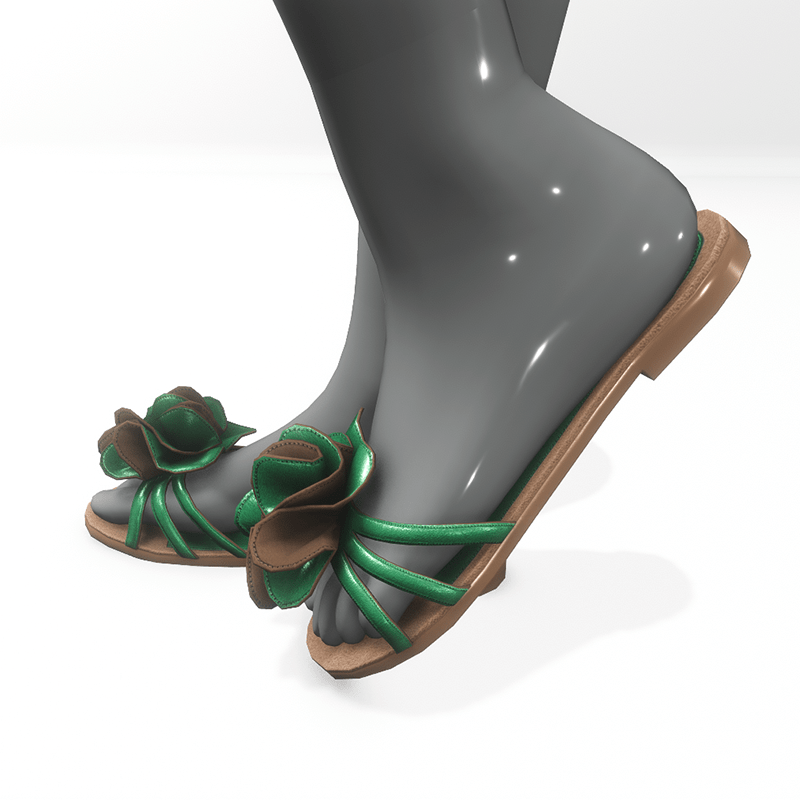 Flat summer shoes for AV 2.0 . They are made of brown and green leather and are decorated with a large flower. Sandals suitable for the city and the beach, match jeans, light dresses and shorts. Get the free demo before purchasing here: https://store.sansar.com/listings/7302b984-28f2-4c50-91d0-921ca25b0259/av-2---flower-sandals--demo