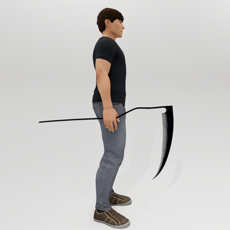 Just in time to scare for Halloween. This black metal scythe will fill out your frightening costume to be a proper looking Grim Reaper/Slasher. (It appears under the rings category in your Lookbook.)