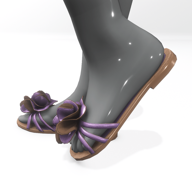 Flat summer shoes for AV 2.0 . They are made of brown and purple leather and are decorated with a large flower. Sandals suitable for the city and the beach, match jeans, light dresses and shorts. Get the free demo before purchasing here: https://store.sansar.com/listings/7302b984-28f2-4c50-91d0-921ca25b0259/av-2---flower-sandals--demo