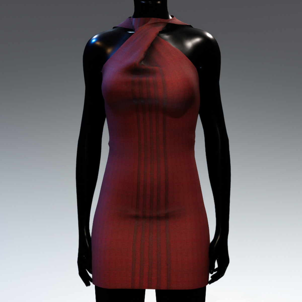 Simple but stylish, short, sleeveless bodycon dress with twisted fabric at the front.In dark burgundy red colour. Get the free demo item to check fitness and style here: https://store.sansar.com/listings/2df594d9-cabc-4ab8-bb84-2aebb5608cd9/front-twisted-dress---demo