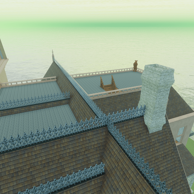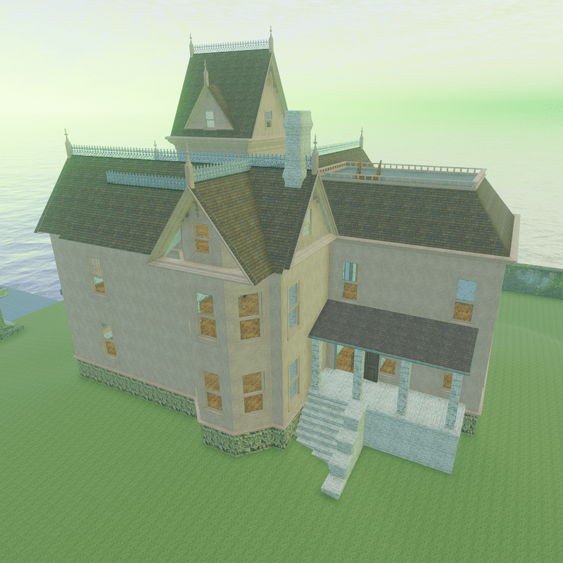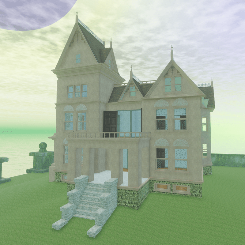 Victorian Dwelling with yard and wall. Art Deco Leaded Glass. All Materials customizable. UV maps in three sections in all Chambers for optional wainscoting, wallpaper, and banner wallpaper. May be viewed in the Base https://atlas.sansar.com/experiences/laerehtksamcitsym/base