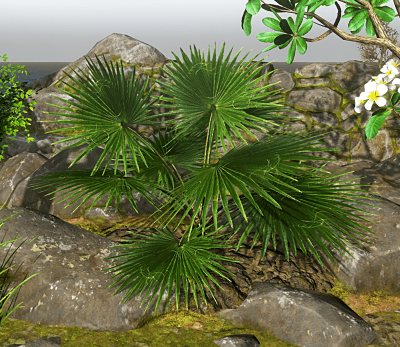 Chinese Fan Palm version 2. This one has more leaves than Fan Palm 1. Polycount: 948 triangles. See in Sansar experience - https://atlas.sansar.com/experiences/reidparkin/reid-s-plants