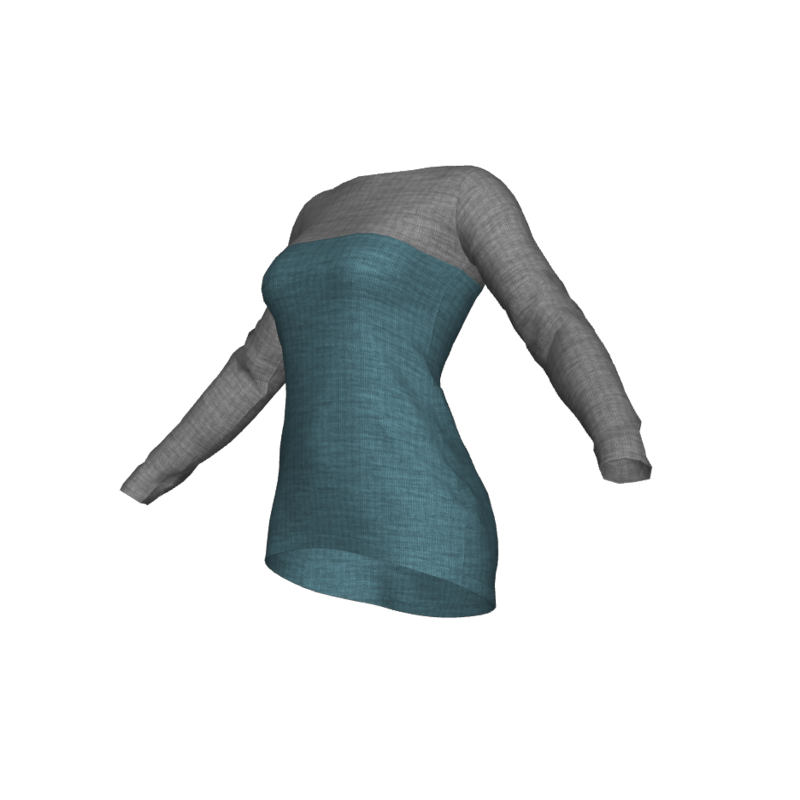 Long ribbed knit boatneck top with long sleeves in grey and blue. Shorter in front, longer in back. Made in Marvelous Designer. Use cloth simulation for best results as this is a snugly fitting item.