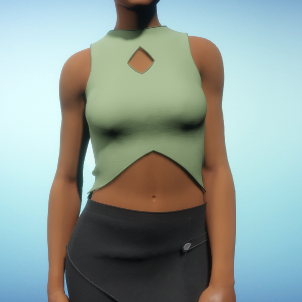 Cropped modern tank top that features a diamond cutout on the chest. By Sweet Distractions