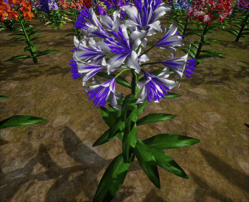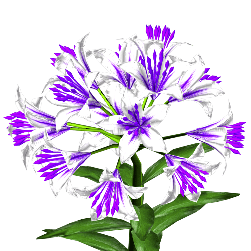 1 Trumpet Lily Plant with about 14 blooming lily flowers and several leaves for your lovely gardens. Polygon count: 15480. There is no collision on this mesh so you can walk through it. I have many colors. To see this flower in Atlas, please visit "LovedWarrior's Ground Plants: https://atlas.sansar.com/experiences/lovedwarrior/lovedwarrior-s-ground-plants" Please note that all my flowers are 100% detailed mesh. Each petal, pollen, stalk and leaf is made by hand and placed by hand. All the textures are also made by me. If you have any flower or plant requests, show me a picture of the flower and I will let you know if I can make it for you. Enjoy!
