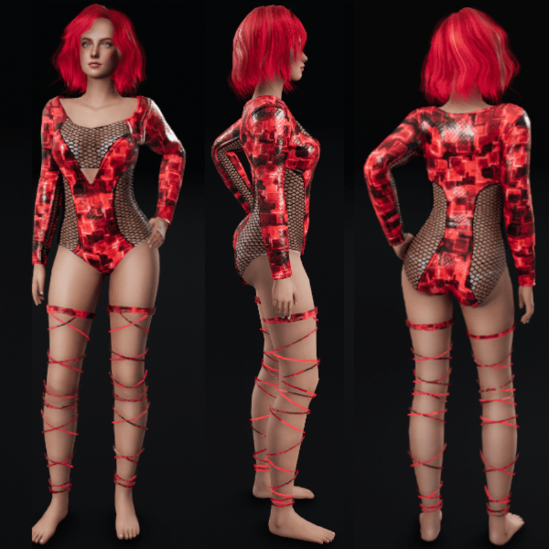 Cyber Cubes Bodysuit with netting, check my store for the matching emissive animated leg wraps Get Demo Here: https://store.sansar.com/listings/2f96b748-99ca-41a6-b98d-df4737bf7d02/cyber-cubes-bodysuit---demo Trying on the available Demo is the best way to assure your satisfaction with quality and fit. The lighting isn't the best in the lookbook and the shoulders seem to fit funny in the lookbook as well, so I recommend wearing the demo in world to see how it truly looks on you. Visit my inworld store experience to find discounted items that or not available on the marketplace and also look for miniature butterflies to find free mystery gifts! https://atlas.sansar.com/experiences/lonaleelancaster/lona Made in Marvelous Designer and can be adjusted to fit most avatars. Please try a demo to assure fit and satisfaction. To learn more about transforming and adjusting Marvelous Designer clothing visit this link: https://help.sansar.com/hc/en-us/articles/115005693363-Fitting-Marvelous-Designer-clothing-to-your-avatar#some-tips