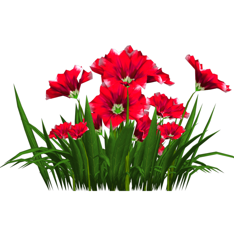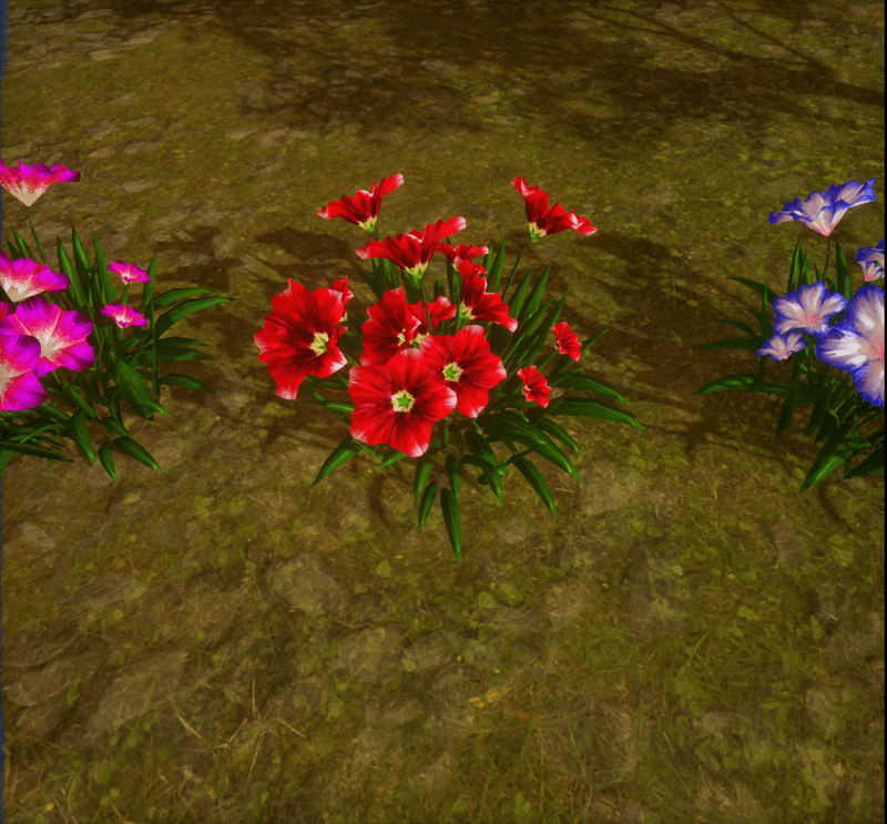 Petunias. I made many colors. There is no collision on this mesh so you can walk through it. To see it in Atlas, please visit "LovedWarrior's Ground Plants: https://atlas.sansar.com/experiences/lovedwarrior/lovedwarrior-s-ground-plants" Each petal, pollen, stalk and leaf is made by hand and placed by hand. All the textures are also made by me. Enjoy!