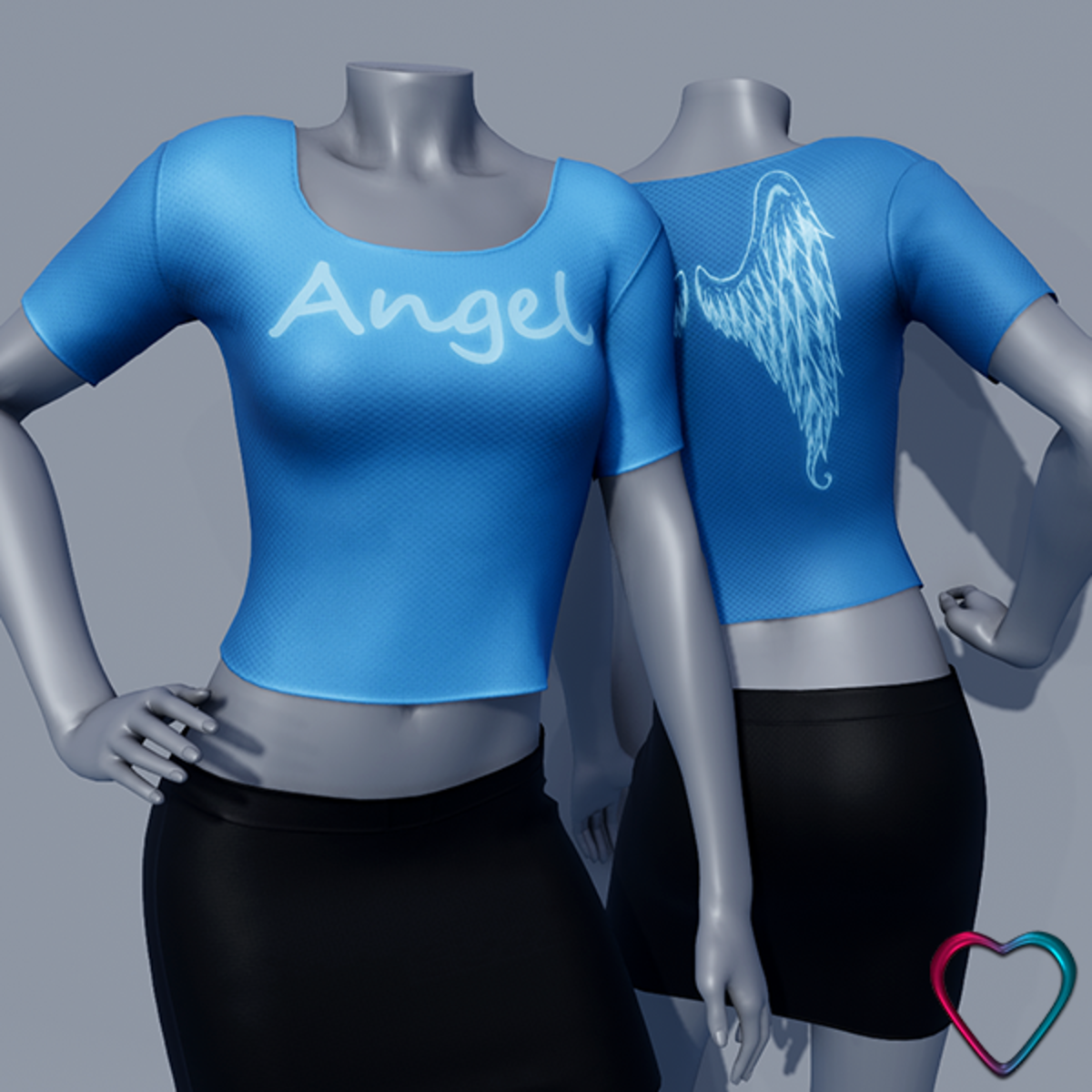Bring a touch of divine elegance to your collection with our "Angel" T-shirt. Proudly displaying the word "Angel" on the front and featuring beautiful angel wings printed on the back, this fitted crop top is designed to capture the essence of celestial grace. Available in 16 vibrant colors, each T-shirt offers the perfect blend of comfort and style, making it ideal for various occasions. Pair it with the matching skirt for a complete and harmonious look, or mix and match colors to create your own unique style. ------------------------------ Technical Details: - Material: Stretchy and breathable fabric for optimal comfort - Design: High-definition print of the word "Angel" and angel wings - Colors: 16 vibrant and durable color options ------------------------------ You can see them in Sansar here: https://atlas.sansar.com/experiences/morganeparis/mpp-mainstore PS: I created it from scratch. I hope you like it. Enjoy and Keep Good Vibes. Hugs from Morgane.
