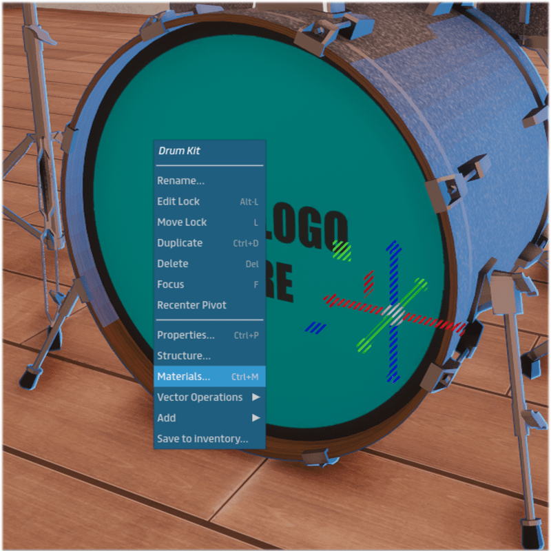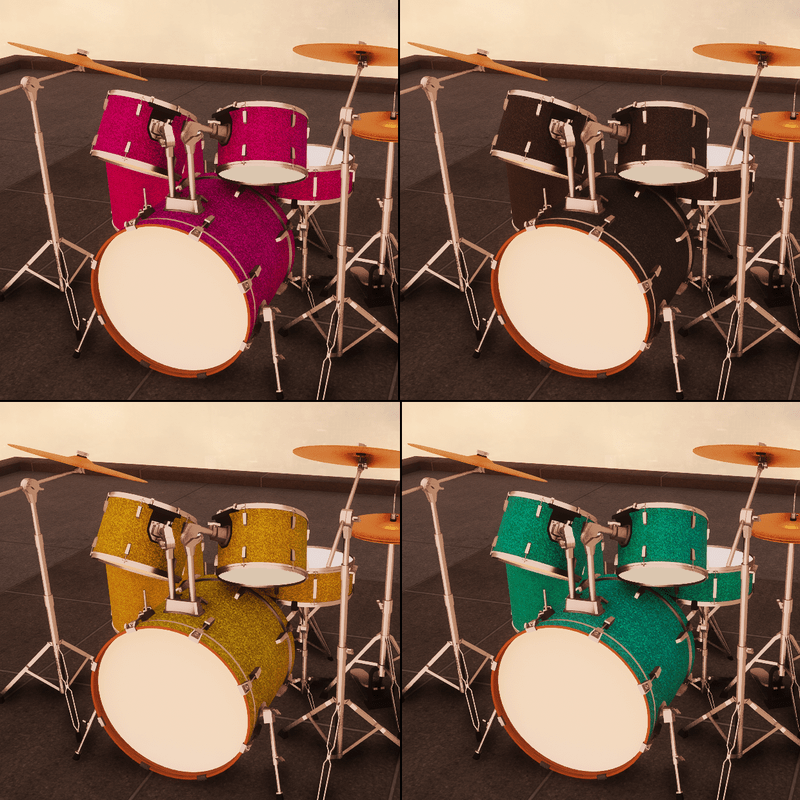 Drum Kit - You can change the color of the wraps material, see pics below). - You can add your own image/logo to the bassdrum (upload a (square size) image to the Albedo map of the BassDrumFront material, see pic below). (If no image is uploaded, the front skin will be like the toms skins) - The seat is unlinked so you can position it separately from the kit. Has no sounds and no animations. Has collison Built for Sansar (optimized for VR). Full/All Edit-able settings enabled. If you have any question: FelixOmniMail@gmail.com